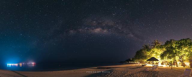 是夜,漫天的星河挂在印度洋的上空,无论你身处岛上何处,只需要抬头仰望,便能看到壮丽的银河。