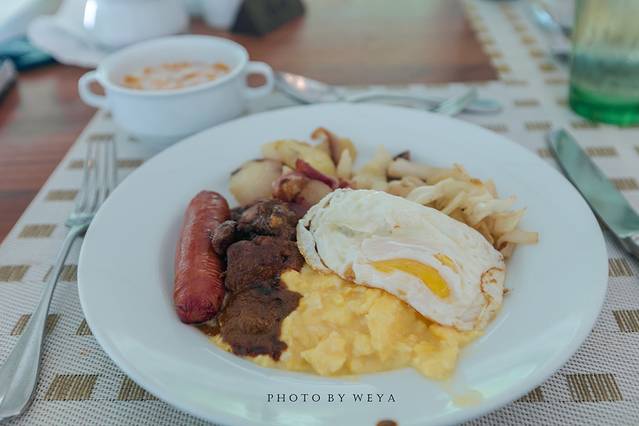 沙屋的餐厅非常的大,没有空调,我们的早餐便在这里进行。