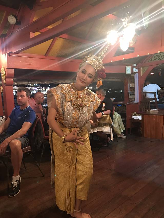 夜游湄南河有好多种船可以选择,可以网上先订好,会比当场买便宜很多哦。我们订的和一般人应该是不一样的……是艘泰式游船……本来想着现代类型的船别的城市也能坐,但是那些骚气的音乐从船上响起的时候我就有种哪天晚上再来坐个船的想法哈哈哈。不过我们的船也是棒棒哒,就是饭菜太难吃了