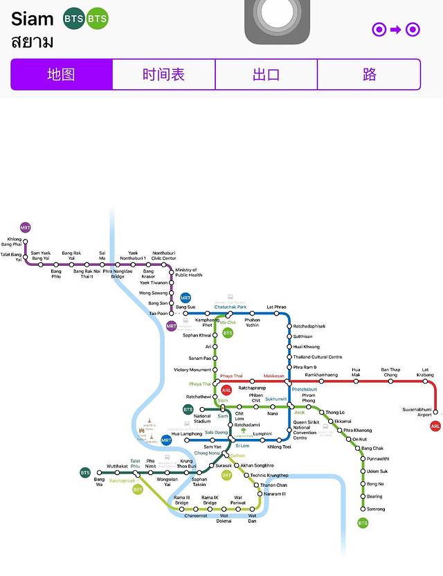 BTS、MRT、机场快线都有。而且有中、英、泰文3种语言可以选择。