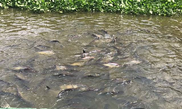 河看起来脏脏的,可是有好多鱼,不禁想起了我刚才吃的虾……