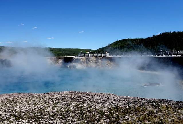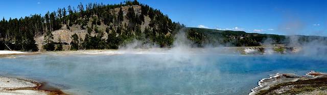 热气腾腾的木丝(Excelsior) 间歇泉,是水温很高(93度)的热泉。