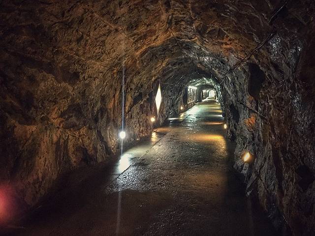 接着就是明代金矿遗址了。依旧是一条长达几公里的走道。不过这个不同,是根据明代矿道扩建的。以前堪堪够一个人走过,现代大到可以开汽车,也就没有那么害怕了。隧道里还放着轻快的音乐。