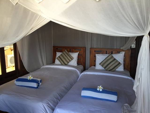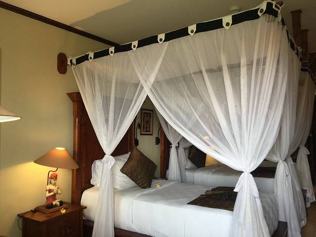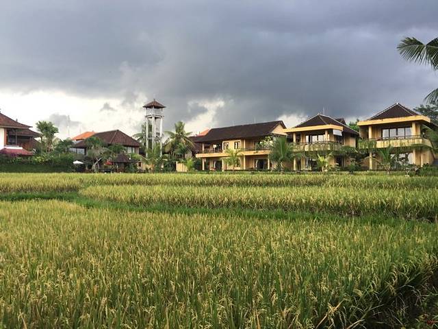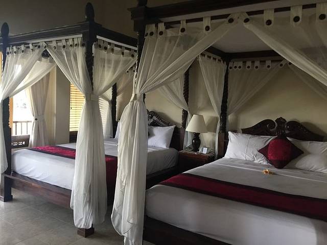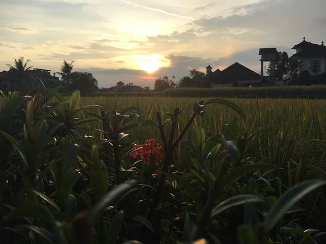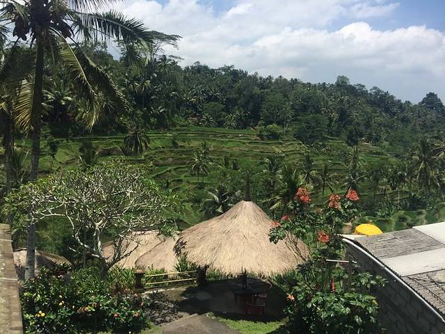 离开蓝梦岛的船票时间我们定在1点,准时发船,送到新的目的地乌布乌布入住的这家酒店不得不再提及一下,真心的不错~或许其他周边的也是很好吧,但是就Sri Bungalows Ubud来讲,一进去就惊艳到我们了。好大的一片麦田,豪华双人房的床真心够大,因为我们是三个人住,虽然要有两个睡一个床,但是一点都不拥挤哦~