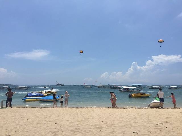 南湾是个水上娱乐项目的集合地,我们原本只是看看海滩,不过看到那么多项目后毅然决然的选择玩上两个南湾的项目可以提前在某宝预订的,价格也比现场买便宜很多。我们因为是临时决定,所以跟售票的小哥墨迹了好久才肯降价让我们玩,拉拽伞88rmb/人,香蕉船65rmb/人~