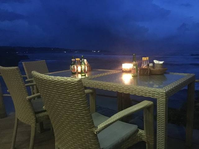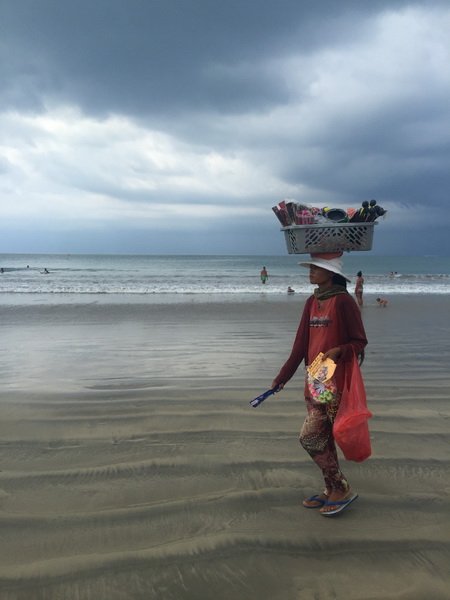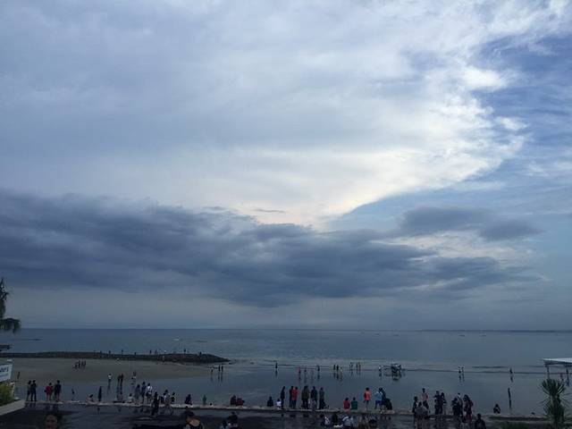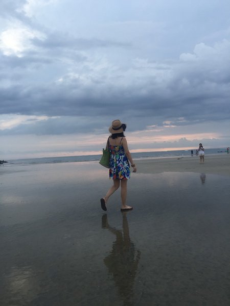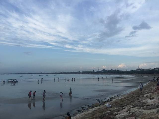 或许是先看过了蓝梦岛,无论是库塔海滩还是金巴兰,总觉得不尽人意~沙子是黑色,看上去有些脏脏的,其实仔细观察海水还是很清澈的。只是最近的阴雨天,老天也并没有给我一个例外,苦等了一个下午,太阳依旧没有出现,一层层的乌云打破了我们的夕阳梦~即便这样,我们还是坚持等到了天黑才离开~出去不远看见一辆蓝色出租便拦了下来,上车后才发现原来是个假蓝鸟~好在司机小哥要价还是可以接受,100000RP我们还能接受。当然,也是出于我们不想再找来找去了,天色太黑,三个女生总是有些顾虑~