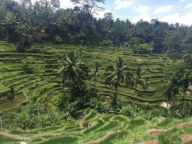 吃罢早餐,本想用uber呼唤一辆车车前往圣泉寺,可是居然木有人响应~无奈在路边众多的taxi叫喊声中,挑选了一位看着比较面善的大哥,最终以一天450000RP的包车价格谈妥,我们前往的三个地点分别是:德格拉朗梯田、圣泉寺、京打马尼火山。不去之前不觉的远,后来发现包车真的是明智的选择!乌布虽然不大,可景点太分散,两两之间还是有段时间的,并且车行的道路也是较为蜿蜒曲折滴,有些道路还是非常狭窄。期间还看到很多外国朋友成群结队的开着摩托车前行,这倒是也是一个方案,只是大热的天气,真心怕有点扛不住。