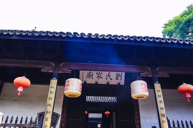 广惠宫整个建筑群体由弥罗阁、东岳殿、城隍殿、雷震殿,三清殿及灶神行宫构成,神明威严的面孔深处是安抚众生的慈悲,庙宇肃穆而神秘。黄墙飞檐,檐上间间歇歇站立着持刀把剑的神灵们,他们目睹了南浔古镇的兴衰史,在南浔人眼里,他们就是这座小镇的守护神。