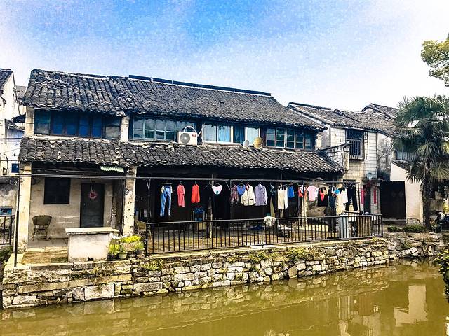 百间楼,相传是明代礼部尚书董份给他家的奴仆们建造的住所,始建时约有楼房百间,故名”百间楼”。百间楼全长400余米,房舍最集中的一段是河东岸的莲花桥到长桥一段,河两岸密布着鳞次栉比的房屋,白墙、青瓦、沿廊、河埠、花墙、卷门、廊檐,每一家的房屋都如出一辙,屋外运河水流淌,船只去了又回,是江南水乡亘古不变的婉约运河风光。