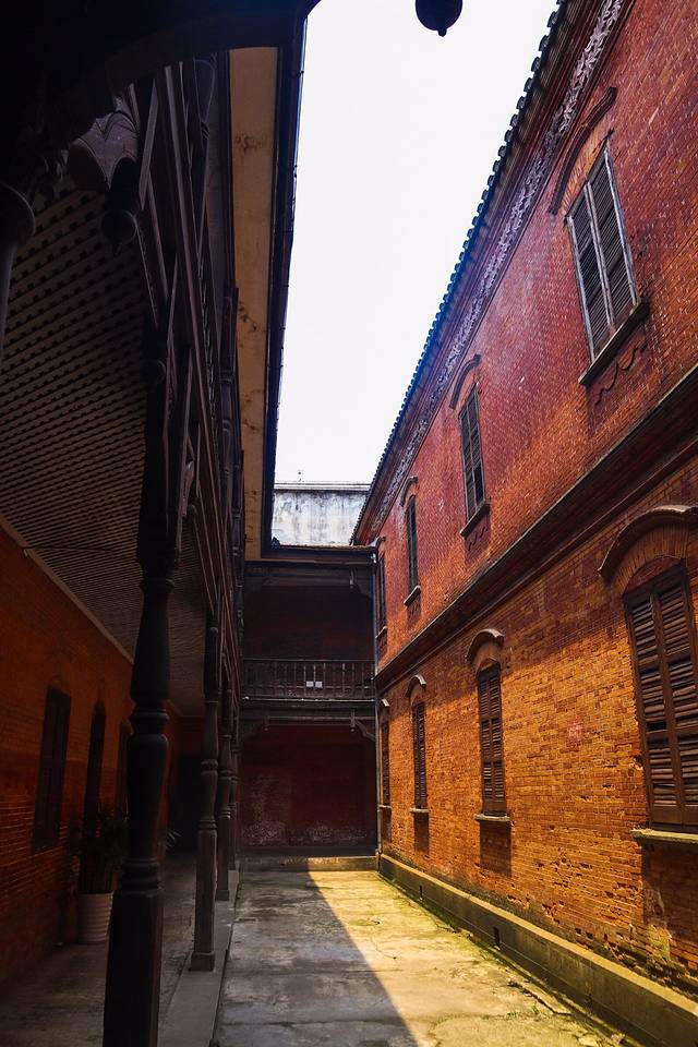 刘氏梯号,又称崇德堂,俗称红房子,是南浔“四象”之首富刘镛的三子刘安泩的居处。这是当时热衷于采纳西洋文化的南浔,又一处中西合璧的建筑:整座建筑分为南、中、北三个部分,南北部分的建筑中不仅融入了罗马风格建筑,质朴无华的徽派封火山墙和石库门内也不惧繁琐地加了个华丽丽的洛可可风格券顶。刘氏梯号高大恢弘,气势迫人,就像南浔的其他大宅一样,这座红房子内也陈列着无数呼之欲出的砖雕、木雕和石雕。
