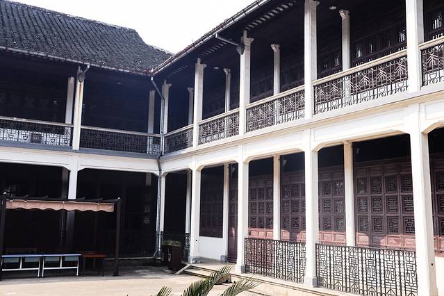 张宅依着古浔溪而建,为五进式院落,有中、西式房间150间。虽是大宅,外表却落落无华,素白的高墙上打开一方门洞就是院门。走入门厅后眼前出现的便一个充满着精致细腻装饰的古典世界。门楼、墙、壁、柱、架、椽、门、窗构思巧妙且风格高雅,数以千计的飞禽走兽和花卉造型的石雕、木雕和砖雕呼之欲出,技工精湛得令人叹为观止,它们都是晚清时期的雕刻作品。而来自法国的花格门窗、彩色玻璃和法国地砖,则为整座张宅增添了无比浪漫的欧洲风情。