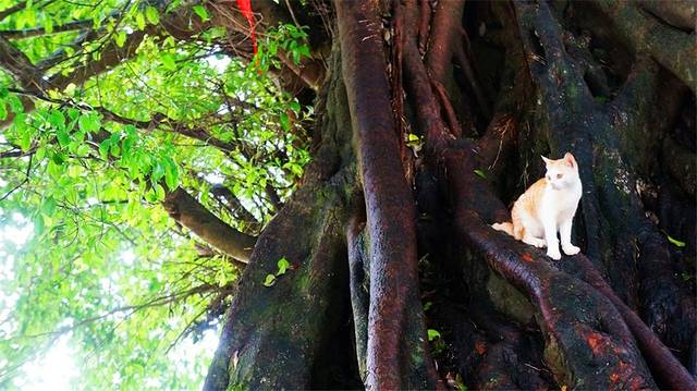 上过无数镜头和旅游书的大榕树,还依然是村民和小猫的遮阳地方