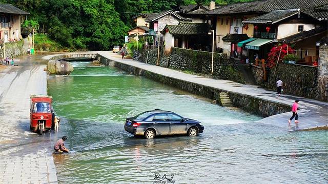 我们来到塔下村在这前一天,正好洪水泛滥。桥都被淹没了,所以可以免费洗车。