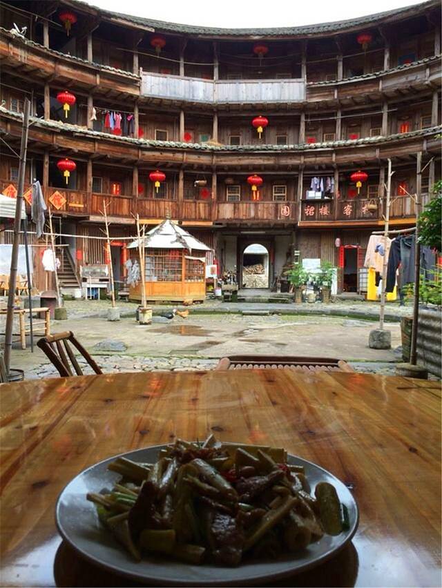 由真正土楼改建的客栈,原汁原味,土里土气^_^