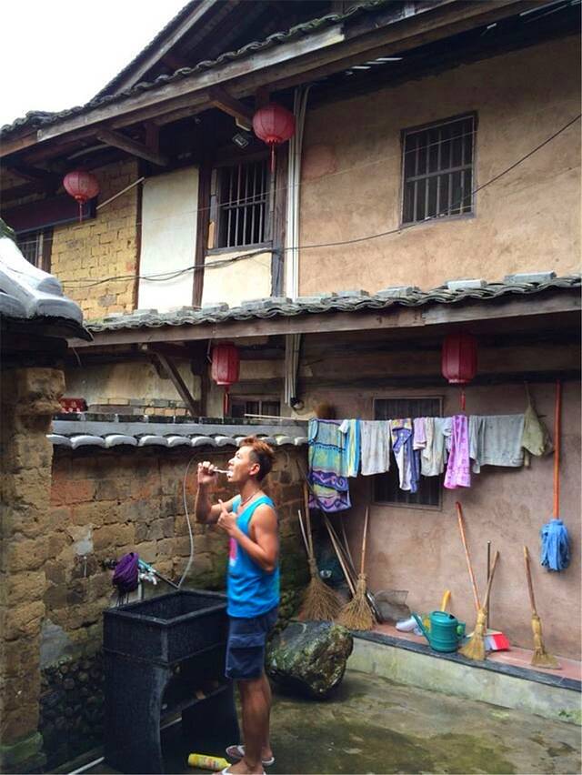 早上起床,拿起牙刷跟着村民在自来水池旁边,洗脸刷牙。