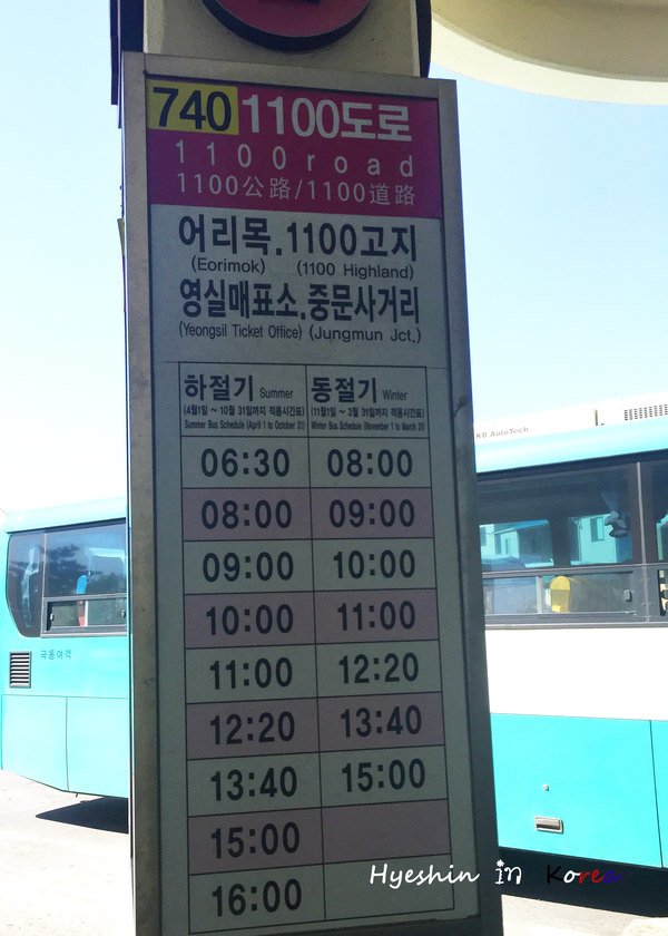 时刻表,计划去济州岛自由行的亲们可以参考下,我们起的晚,出发的时候是10点的车了,将近一个小时,终于到达汉拿山。