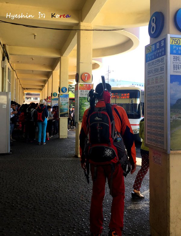 先打车去市外公交站,然后问好到汉拿山的路,到相应月台上候车。