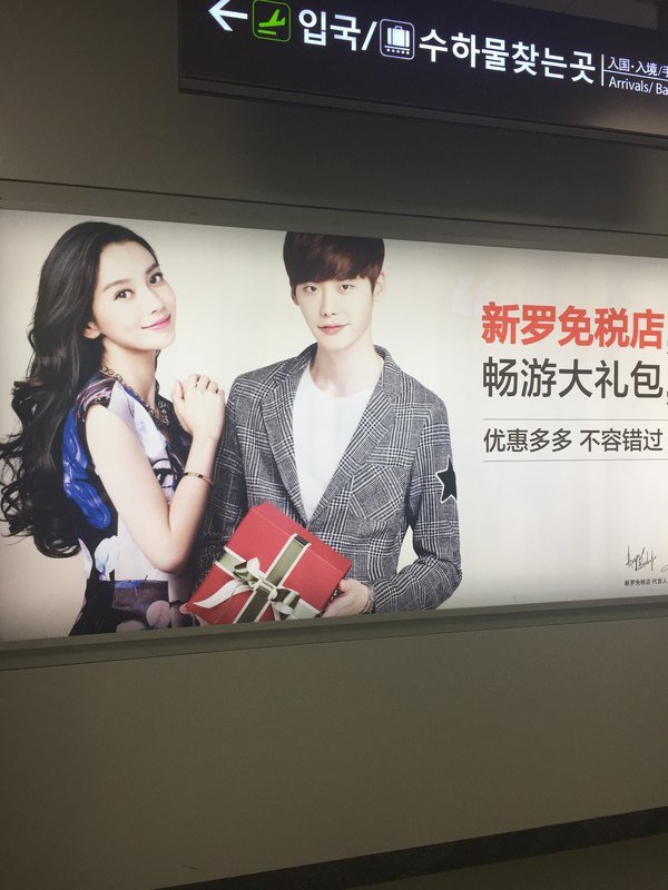 入境~~上来就看到新罗免税店的广告牌啦~亲切!!二硕和baby