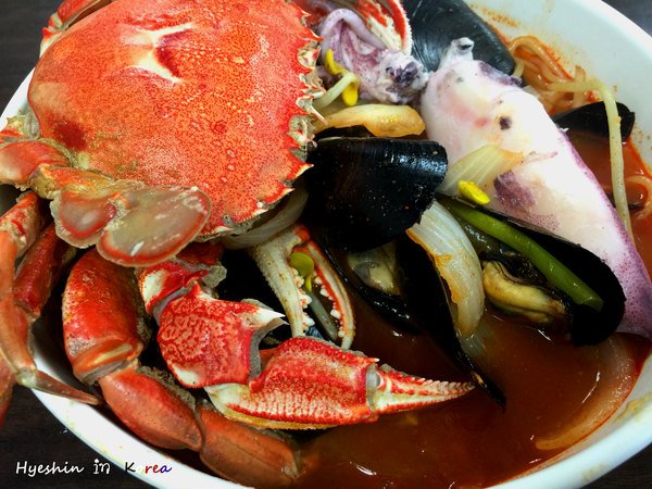 海鲜面12000韩元,炸酱面8000韩元,海鲜面里的海鲜很多,不过好辣,怕辣的人一定慎点,我喜欢吃辣都觉得好辣。吃着杂酱面就想起无限挑战里刘大神从首尔MBC跑到济州岛经历了种种然后坐船去一个小岛点杂酱面,虽然很心疼但还是笑了出来。
