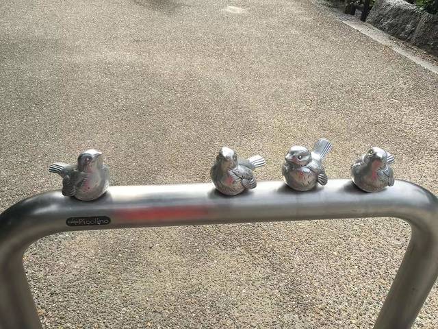 可能是为了防止游客座踏吧,放了小鸟做装饰,倒也有特色