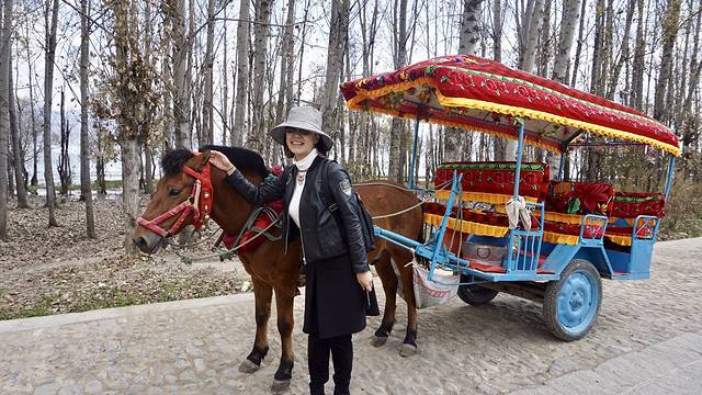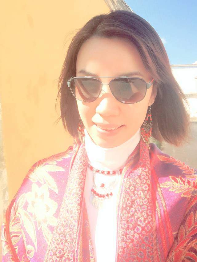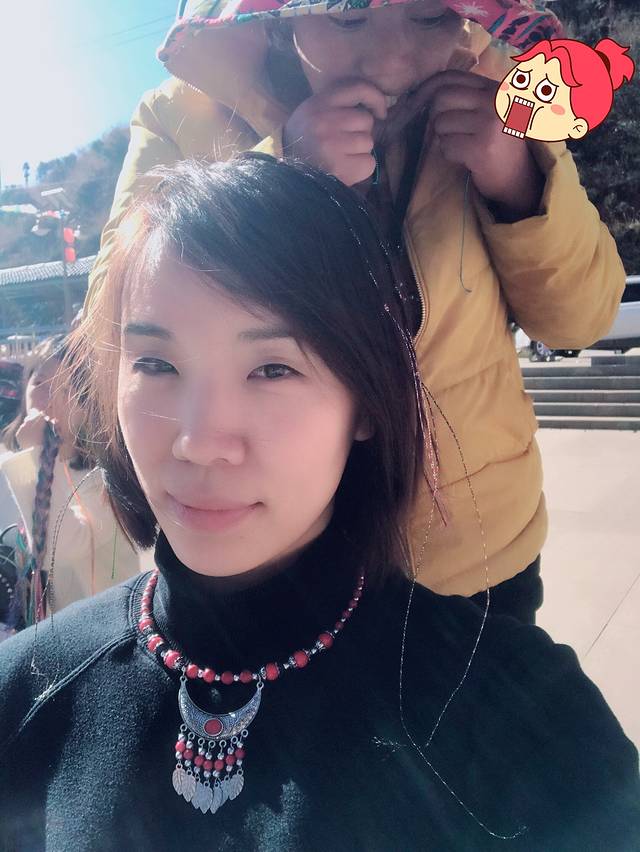太阳晒的我热死,赶紧脱掉花棉袄回归城里人装扮