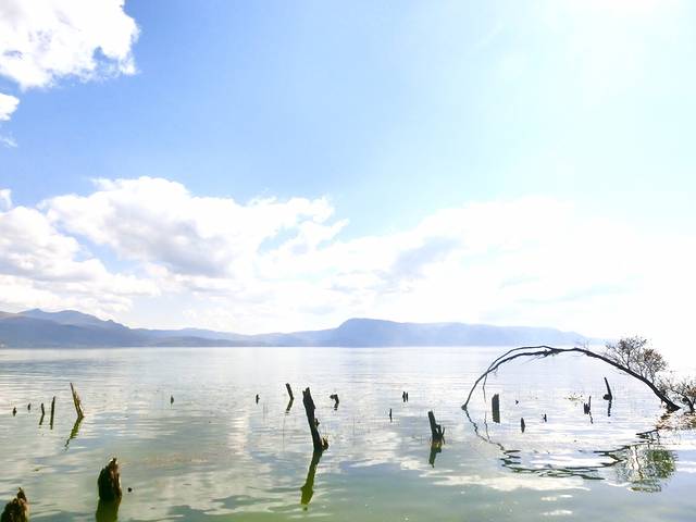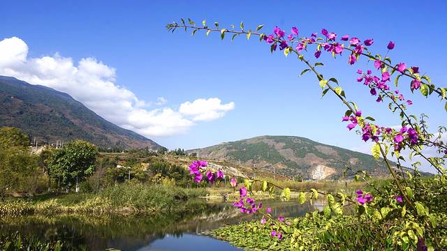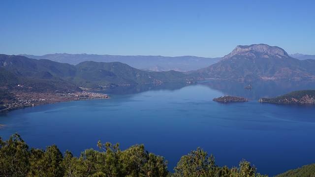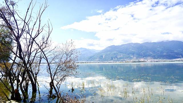洱海古称“叶榆水”,也叫“西洱河”、“昆弥川”,是由西洱河塌陷形成的高原湖泊,外形如同耳朵,空中俯瞰,洱海宛如一轮新月,静静地依卧在苍山和大理坝子之间。洱海共有三岛、四洲、五湖、九曲,湖水清澈见底,自古以来一直被称作“群山间的无瑕美玉”。在洱海最南端的团山有一座洱海公园,是观赏苍山洱海景色的好处所。