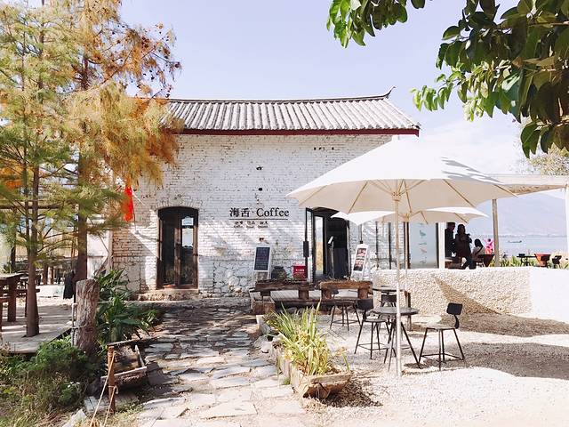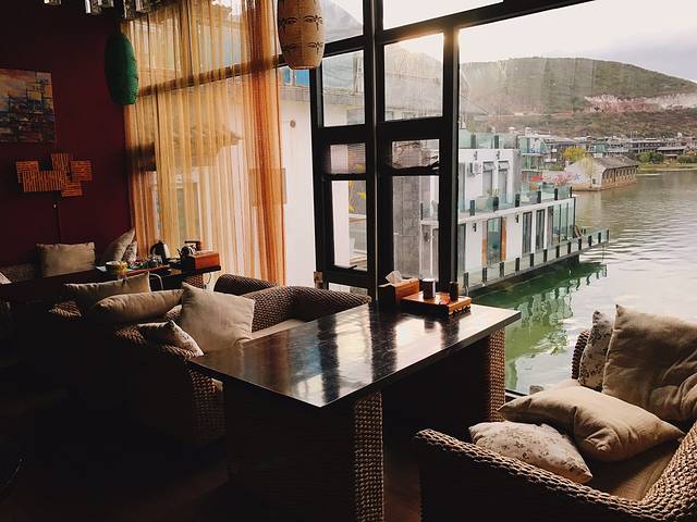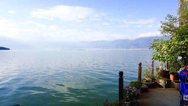 客栈二楼有个茶室,放了很多书,面朝洱海。喝杯咖啡,看看书,望望海,但是视野不算开阔。
