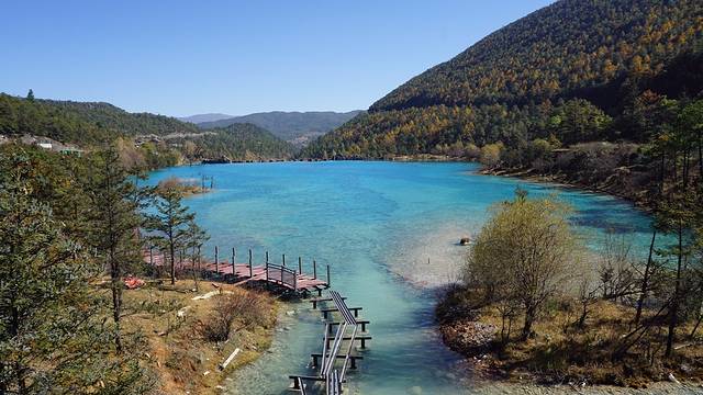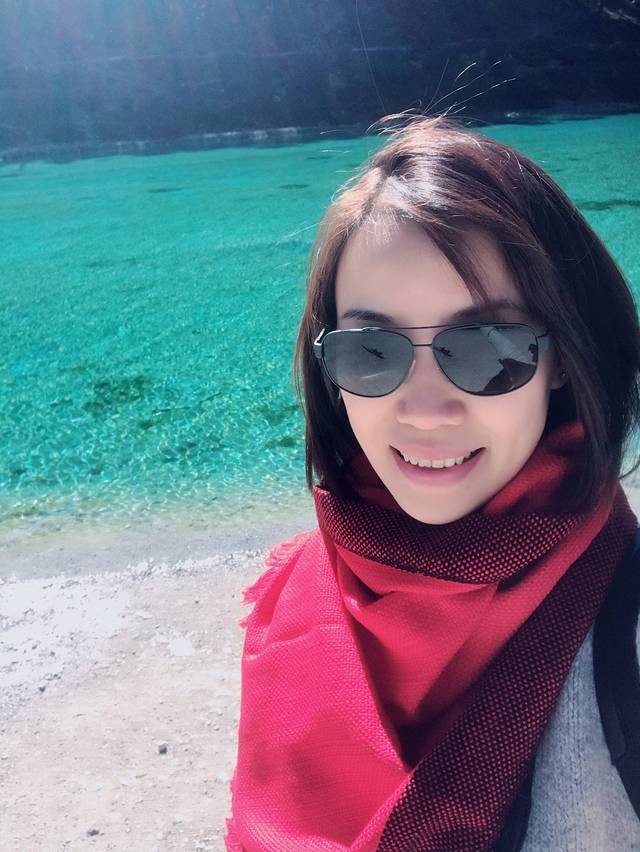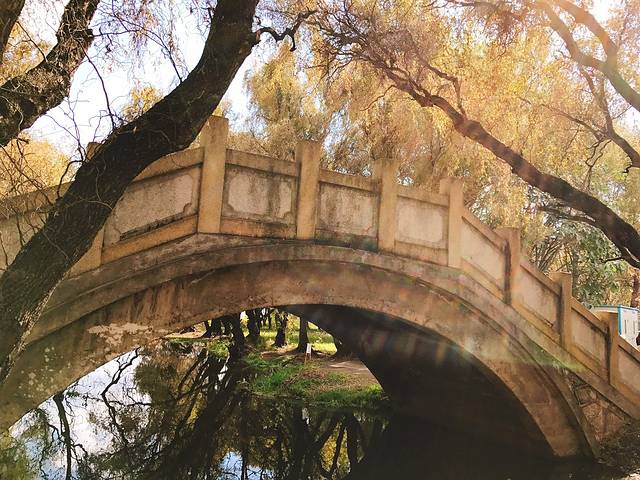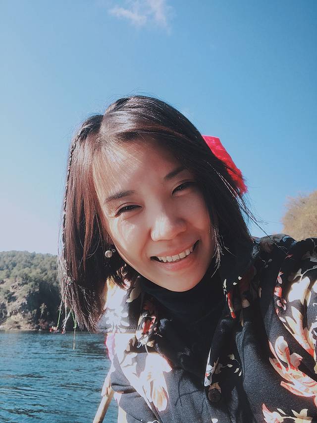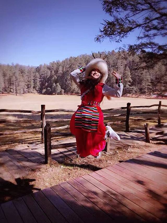 5、妹纸们一定备一条色彩艳丽裙摆大大的长裙,在湖边拍照美的不要不要!