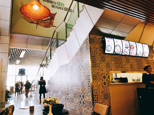四十分钟左右到达机场。离登机时间还早,候机楼里能找到的休息场所就是一家又卖米线又卖咖啡的小吃店。没得选择。