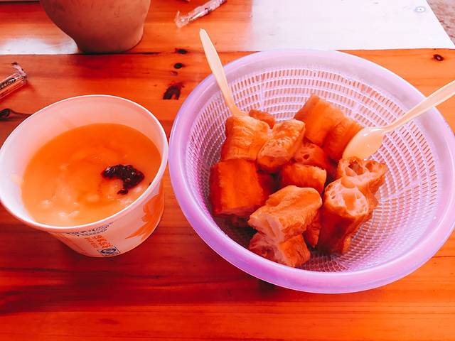早上八点半,杨师傅早早的等在了弄堂口。带我们去吃了有特色的当地早饭:油条沾豌豆泥and 米线(又是米线,哈哈)。真的很好吃呢