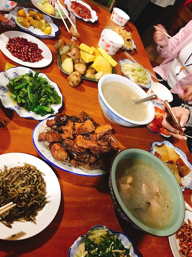 点了招牌雪山鱼、鲜花炒蛋、汽锅鸡和丽江粑粑。