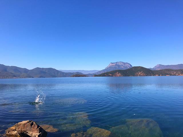 不过行程里已经友情提示了:由于是山区里的山区,物质条件有限,敬请谅解。好吧,不过这个价格能住到一间很宽敞的湖景房已经很不错了,虽然没空调没暖气(后来才知道就算500元以上的客栈也没有空调的也只提供电热毯,这......)