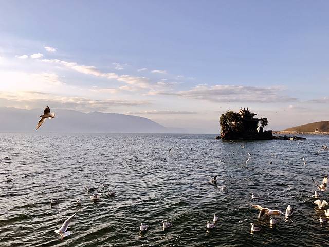在洱海里,小普陀可以说是“袖珍小岛”。岛虽然小,但名气很大,普陀周长只有200多米,全由石灰岩构成。它的形状很像一颗圆形的印章,因此又叫海印。