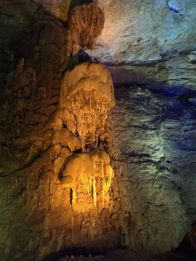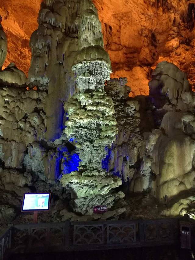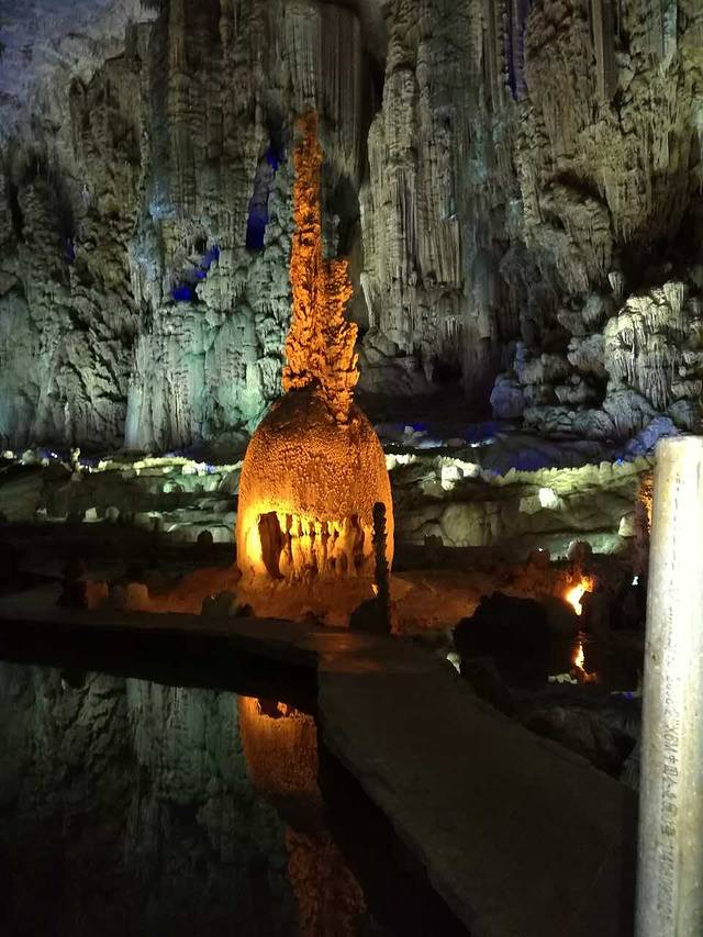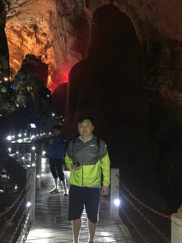 今天主要是游玩岩溶博物馆--织金洞,到了织金洞,才知道喀斯特地貌是如此瑰丽多姿,钟乳石是如此形态万千、色彩纷呈。一路走来,拆服于大自然的鬼斧神工,震撼于岁月的精雕细琢。雄伟壮观的地下塔林、美仑美奂的银雨树、精美绝伦的霸王盔、栩栩如生的"婆媳情深"……,一幅幅大画卷,一处处小场景,令人心魄震惊,叹为观止,如同进入神话般的奇幻世界一般,真是此番风景天上有,却是人间洞其中。我们不禁感叹岁月的杰作,在它们面前,我们是浮躁的,总是急匆匆往前赶,生怕错过什么,以分秒为刻度刷新自己的生活。而在这儿,时光仿佛凝固了,千年、万年都显得那么短暂,滴水生石、日积月累、始终如一,终于千锤万炼,滴出了织金洞这一人间仙境。