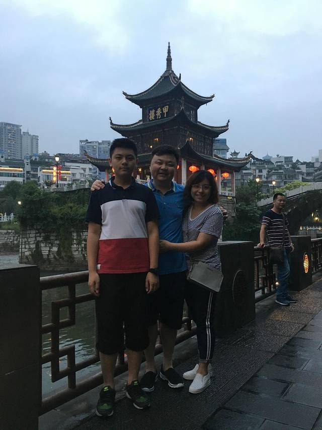 江阴和贵州之间有一位耳熟能详的名人——徐霞客,我的老乡400多年前去过贵州,并对其大加赞词,对于黄果树瀑布,他是这样说的:“路左一溪悬搗,万练飞空。溪上石如莲叶下覆,中剜三门,水由叶上漫顶而下,如鲛绡万幅,横罩门外,直下者不可以丈数计,捣珠崩玉,飞沫反涌,如煙雾腾空,势甚雄厉,所谓珠帘钩后不卷,匹练挂遥峰,皆不足以拟其壮也”。对于陡坡塘瀑布,他是这样说的:“从隆隙北望,忽有水自东北山腋泻崖而下,捣入重渊,但见其上横白阔数丈翻空涌雪,而不见其下截,盖为对崖所隔也。”对于小七孔,他是这样说的:“其石极嵯峨,其树极蒙密,其路极崎岖。”400多年前,没有飞机,也没有火车、汽车,不知道他老人家骑了什么马,一晃就晃到了贵州这种地无三尺平的地方,佩服万分。响应前贤,背上行囊,拉上老婆,牵着小胖,出发了!南京登机,2.5小时后准时到达,想想老乡要走几个月呢!打的至贵阳溢彩甲秀茶旅驿站住宿,客栈近甲秀楼,古朴典雅。稍憩片刻,外出闲逛,走在风景优美的南明河畔,近观贵阳城市核心景观文化地标甲秀楼。晚餐在丝恋红汤娃娃解放路国贸逸天城店,不愧是大众点评极力推荐,晚上8时前往,仍需排队。品尝了贵阳特色丝娃娃、玫瑰红糖冰粉、烤掌中宝、绿豆汤等特色小吃,虽没惊艳之处,且也中规中矩。餐后步行回客栈,天气凉爽,民风纯朴。