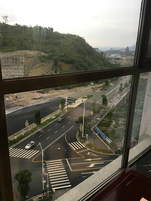 早上起来,倾盆大雨,飞机停飞,怎么办?回贵阳的汽车票早已售完,天无绝人之处,在这里要好好感谢那里客栈的老板娘,在她的帮助下,找到了一辆回贵阳的顺风车,直接送我们到黄果树镇,大洋600,虽然比汽车票稍贵,但也合情合理,可以承受。汽车出发了,六小时的行程,青峰耸立,群山环绕,喀斯特群山连绵不绝。我们翻山越岭,沉浸于风景,一眼望去,都是醉人的绿色。山势或神奇或险峻,或梦幻或壮美。白云悠悠,点缀在蓝天之间;薄雾袅袅,弥漫在青山之前。美得让人不敢打瞌睡,生怕错过下一个极美瞬间,一路皆风景,处处皆大片。茶园、菜园、梯田美景如画,小溪、河流、瀑布风光旖旎,让人不禁惊叹,山的那边是否就是世外桃源。到达预定的漫格兰酒店,豪华大气,房间大、设施全、性价比高,值得推荐。晚餐在黔人百味,作为资深吃货,大众点评就是我们的依靠,品尝当地的人气美食是我们的向往,不亚于探访美景的迫切。带皮牛肉、野菜蛋饼、野生竹叶菜、爆炒肥肠等一一摆桌,大致能代表当地菜肴水平,让人赞叹!饭后下雨,老板亲自驾车送我们回酒店,好评!