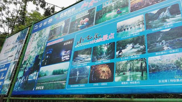 小七孔景区现在是贵州最热门的景点,位于贵州荔波县西南部,景区内有一座建于道光15年的小七孔古桥,景区之名由是得之。小七孔景区在宽仅1公里、长12公里的狭长幽谷里,集洞、林、湖、瀑、石、水多种景观于一体,玲珑秀丽,有“超级盆景”的美誉。与客栈老板商量好,140元钱包车前往。成人门票110元,14周岁以下免票,观光车费每人40元。买好门票,登上观光车,美丽的小七孔之旅开始了。我们先乘车到达第一个景点卧龙潭,潭面颜色由绿到蓝,好似一大块翡翠宝玉。只见水顺着潭面流下,一泻千里,白色的瀑布就像一把玉梳,水声轰鸣,雾雨蒙蒙,宛如仙境。上来就给了我们惊艳的感觉。下一个景点是鸳鸯湖,这是由两个大湖、四个小湖串联组成的高原喀斯特湖泊,水面迂回交合,形成一座水上迷宫。划船入内仔细看去,这里的千百株树木,全都植根于水中的顽石上,又透过顽石扎根于水底的河床。水中有石,石上有树,树植水中,这种水、石、树相偎相依的奇景令人叹为观止。湖水碧绿、波光潋滟,在不同的地段因从树丛中射入的光线变化,形成了一幅幅令人叹为观止的绝妙景色。划船游费用每人30元,让人觉得物超所值。泛舟湖上,一路嬉戏,洗心洗肺,观景赏水,不亦乐乎!接下来是天钟洞,因为之后的行程中有织金洞,游玩之前,我们不以为然,以为只是到此一游,走马观花而已。因为是另外收费的,8元一人,游人不多,进洞后,气温顿时降了几度,凉爽适宜。洞内有3层,总长约2000米。洞厅高大,前后相通,廊道迂回,由石花、石树、石盘、石幔、石笋、石柱、石葡萄、石钟乳等组成的一幅幅溶洞景观,最主要的在大厅中央有一樽形如天钟的钟乳石巍然屹立,就是天钟洞的由来。虽不惊艳,但也中规中矩,值得一游。接下来就是翠谷瀑布,群山苍翠,云雾缭绕,瀑布悬于山腰,竟不知源头何处,远观似玉带,近看水雾蒙蒙,更添神秘,似一位长发的苗家美女在洗梳打扮,显得那么清婉、柔媚,别有一番风味。关键来了,我们随身携带的水喝光了,左顾右盼没发现一个小店、一个摊位,当时还没在意,以为下一个景点就会有店铺。可惜事与愿违,理想总被现实打败,整个小七孔景区就只有小七孔古桥处有一小摊位,其他的都被以不卫生的名义赶走了,美其名曰景区整治,那你至少也要推出正规的店铺,大部分旅客都要在景区玩5个小时以上甚至一整天,竟然找不到地方买一瓶水或其他吃的。在这里要好好吐槽一下,美景如画,服务糟糕。言归正传,下一站便是林溪穿插的水上森林了,这里便要夸夸小胖妞的心思周全了,当别人或在岸上驻足不前,或脱袜下水,我们叁一律涉水鞋,无所顾忌,踏水而游,甚为痛快,愉快地感受着流水的清凉和水上森林的奇景异趣,不知羡煞了多少旁人。下一站便来到了飞流狂泻的拉雅瀑布,这与翠谷瀑布形成了鲜明对比,一位是小家碧玉,小鸟依人;一位是魁梧大汉,高大威武。瀑在路侧,腾空喷泻,声振如雷,溅喷的水雾飘飘洒洒,撒珠抛玉,甚为清凉。古人云:翠屏横截万里天,悬水落成千丈玉。古不欺我矣,振臂高呼,瀑下留影,一抒胸中心怀。拉雅瀑布对面就是潭瀑交错的68级跌水瀑布,层层叠叠,连绵不绝,或倾珠撒玉,或匹练飘逸,或一泻千里,气势如宏,形态各异,风情万千。但我等口干舌燥,无心留恋,稍停片刻,即赶下处。终于到了传说中的小七孔古桥,一座青石砌成的古桥,古朴沧桑,照例上桥留影,忽然眼前一亮,桥旁岸侧竟有小店一座,热泪盈眶,深切感到“柳暗花明又一村”,顾不上拍照,快速前往,饮料数瓶、香肠、凉粉、烧烤若干,终于心满意足。小七孔古桥在眼中变得如此美丽引人,这就是历史的见证,经过岁月的沉淀,桥上遍布青苔藤蔓,桥下粼粼碧水,两岸古木参天,树枝缠绕,空气中荡漾着一种悠然静谧的气氛,历史仿佛就在这里定格了。