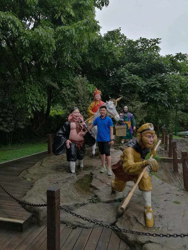 一觉睡到自然醒,目标黄果树,该风景名胜区主要有陡坡塘景区、天星桥景区、大瀑布景区三个代表景点。买了票、包了车,三人满血出发。陡坡塘没有大瀑布那么有名,可能你没有来过这里,但是相信你我都对它十分熟悉,没错,就是86版《西游记》片尾的猴哥们取经必经之地。怀着朝圣的心情,走进景区,看看八十一难的介绍,摸摸八戒的肚子,与大圣合个影,顿时满足了,儿时的梦想实现了,传说就在我们身旁。"你挑着担,我牵着马,迎来日出送走晚霞”漫步西游古道,不知不觉就来到了陡坡塘瀑布了,瀑布沿着和缓的钙化滩均匀地铺撒开来,犹如珠帘密垂,又似轻纱柔覆,柔和细致的形成一道银色的风景线。瀑布位于黄果树瀑布的上游,是黄果树瀑布群中瀑顶最宽的,我们去时水量较大,瀑布发出一阵阵“轰隆、轰隆”的吼声,不负“吼瀑”的美名。陡坡塘瀑布的美别具一格,在陡坡上降下的瀑布紧凑有序,跌宕起伏,水势顺流而下,蔚为壮观。世间有万千旖旎美景,你不到达永远无法体会,陡坡塘瀑布的美就是如此,你不靠近它,就无法体味它的独特。飞溅瀑珠中,合影数张,奔腾咆哮旁,笑问路在何方?