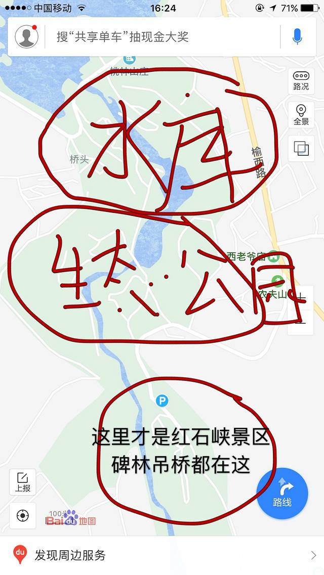 吃完面要走1000多米坐公交车3路或5路到镇北台,下车之后左手边有牌子,走那个小路一直走就到了。注意这个景区不是有碑林的那个,门票可以微信,没有团购,20块,里面有生态园,没什么看的,都还没有开发。有点脏乱差