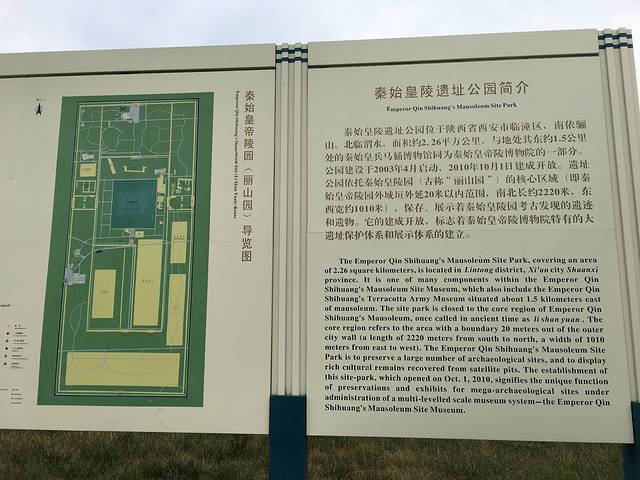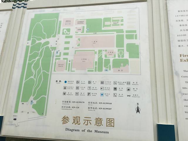 进了兵马俑大门,右手边是陈列馆,正对右边一点是二号坑,左边是一号坑,二号后面是三号坑,看完之后大门出景区,看到哈根达斯左拐,一直往前走,走到停车场,停车场旁边就是免费摆渡车,坐到秦始皇陵。