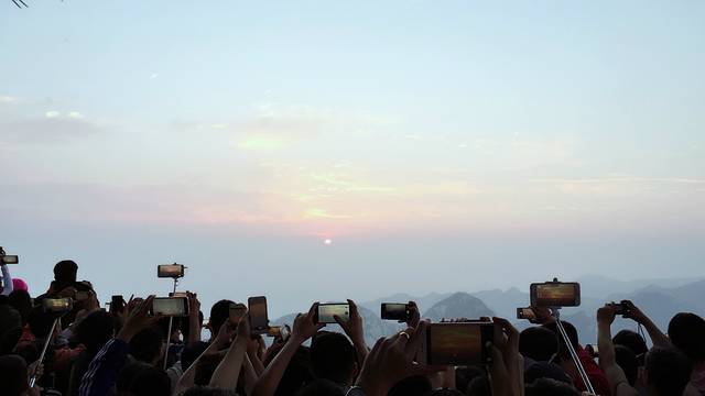 日出,下面全是人,我这是举着自拍杆照的,要不然你觉得160的我还能有日出看么