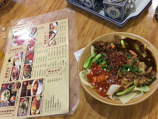 查了美团,评价最高的biangbiang面,在火车站坐258,20分钟就到了,人很多,态度很差,不过味道不错。