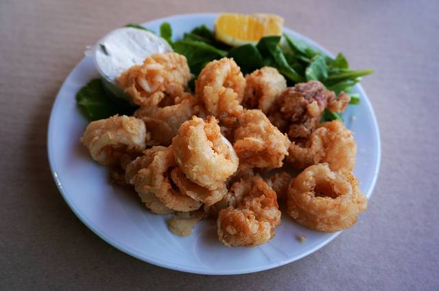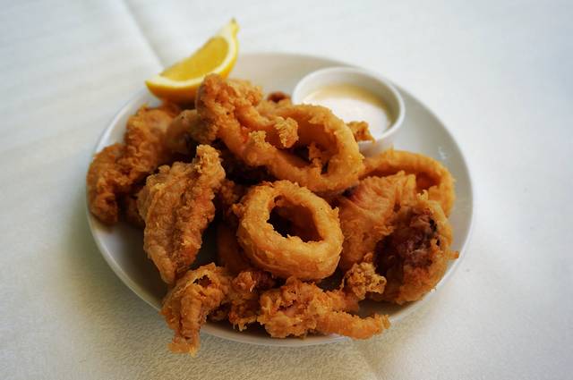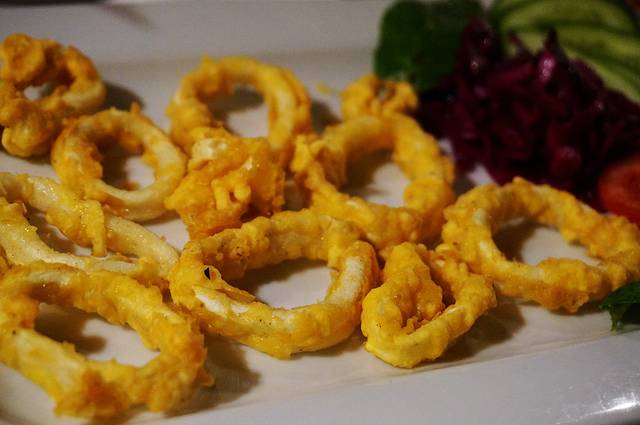 #炸鱿鱼圈# 因为费特希耶的鱿鱼圈让我们对鱿鱼圈产生了浓厚的兴趣,结果后面点的都没有费特希耶的好吃,桑心。这家的鱿鱼圈也一般,外面裹的面包糠不脆。