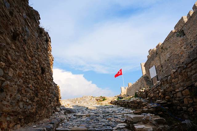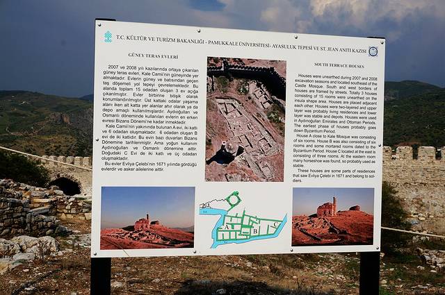 阿亚索鲁克城堡(Ayasuluk Kalesi),位于塞尔丘克镇西北、坐落在阿亚索鲁克山 Ayasuluk 顶部。最初由拜占庭人在六世纪时建造,后来由塞尔柱人重建,存留至今的部分修建于奥斯曼帝国时期。就在圣约翰教堂的后面,沿着一小段山路便能走到。