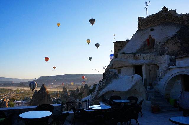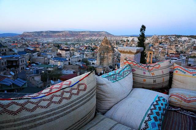 他们家最出名的一定是他们的露台了,露天的沙发、地毯。可以俯瞰格雷梅,清晨热气球升起的时候应该更美,很适合拍照。不过我们因为住这里那天去坐了热气球,所以并没拍到早上的景象。其实如果不住这,也是可以来露台拍照的,实在订不到也没关系。
