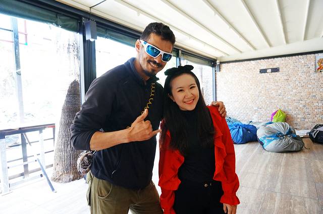 早上会有车按照约定时间来酒店接,前往滑翔伞地点。下车一眼就认出伞哥了,他带着我们上车,前往山顶。包可以寄存在公司,伞哥说可以带手机上去,因为我们可能会想拍照,飞的时候给他帮忙装起来就好。