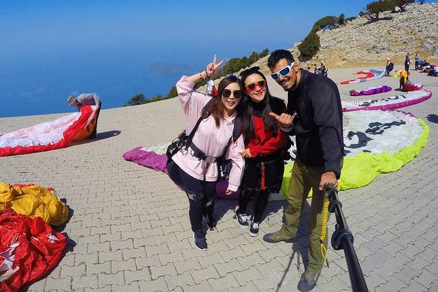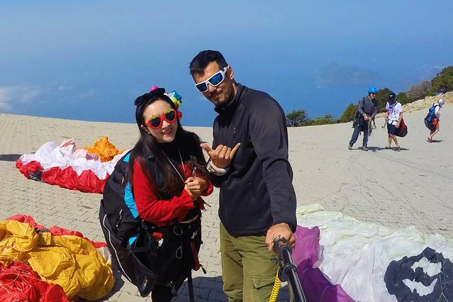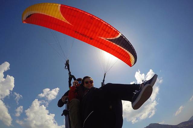 提前预定了滑翔伞,我没有定最有名的R家和E家。我是在结伴群看到了有小伙伴发滑翔伞界很会拍照的知名网红-伞哥的照片,觉得伞哥蛮帅的,而且评价也不错,就加了他媳妇的微信,直接跟她预定了,还可以指定教练。价格是498人民币(不含照片、视频,照片视频单独给教练现金100里拉)。