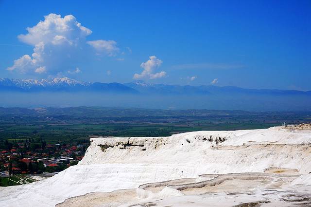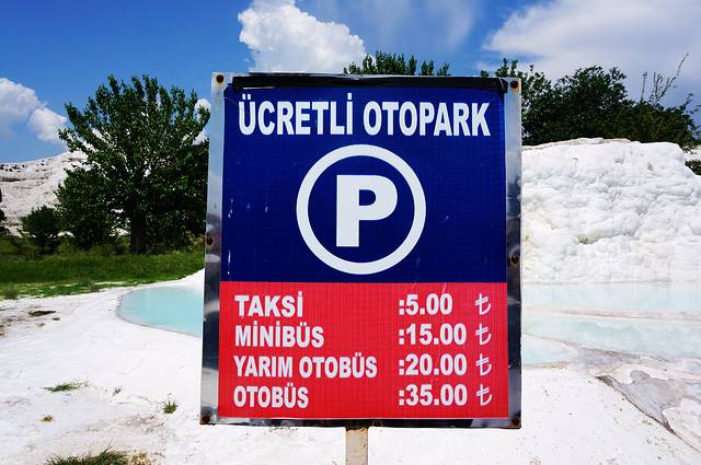 退房后,我们开车去棉花堡,把车停在了公园旁边的车位里,要收费,5里拉不限时。不敢停在路边,担心万一罚款得不偿失。