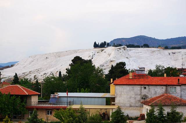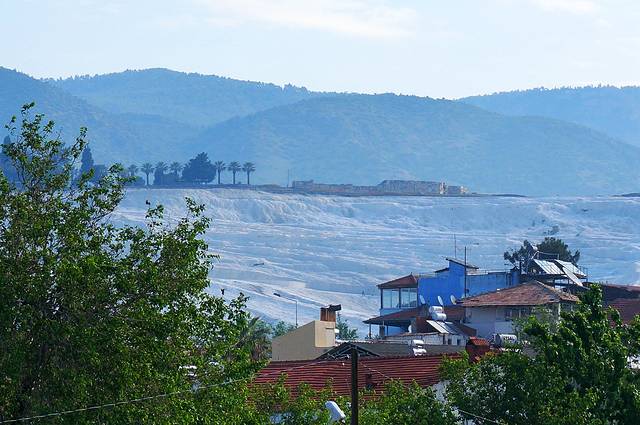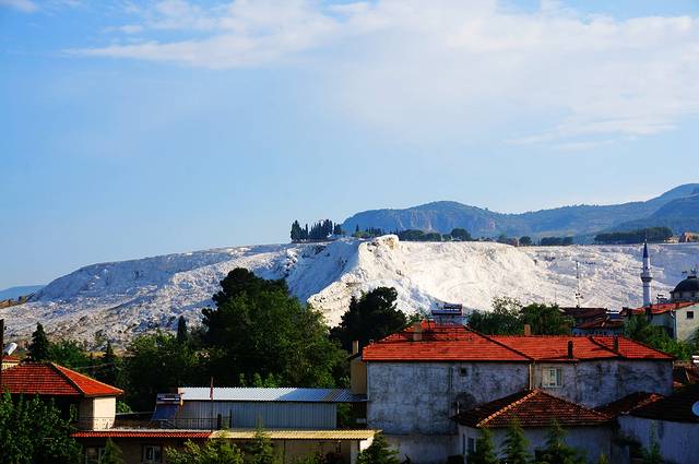 房间的阳台可以直接看到棉花堡,因为到的时候已经6点多了,而且天气刚下过雨,也不是很好。所以就打算明天一早再去棉花堡了,放弃去棉花堡看日落了,据说日落是最美的,而且光线柔和~不过棉花堡这个季节就是午后容易有雨,所以要看运气。