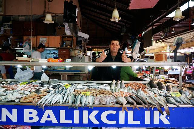 这家在费特希耶鱼市,一进来就可以看到有一家是“蓝白”主题色的餐厅,非常有爱琴海风。强烈推荐!他们家的鱿鱼圈真的是太太太好吃了~后面还吃过几家的,都不如这里的好吃!